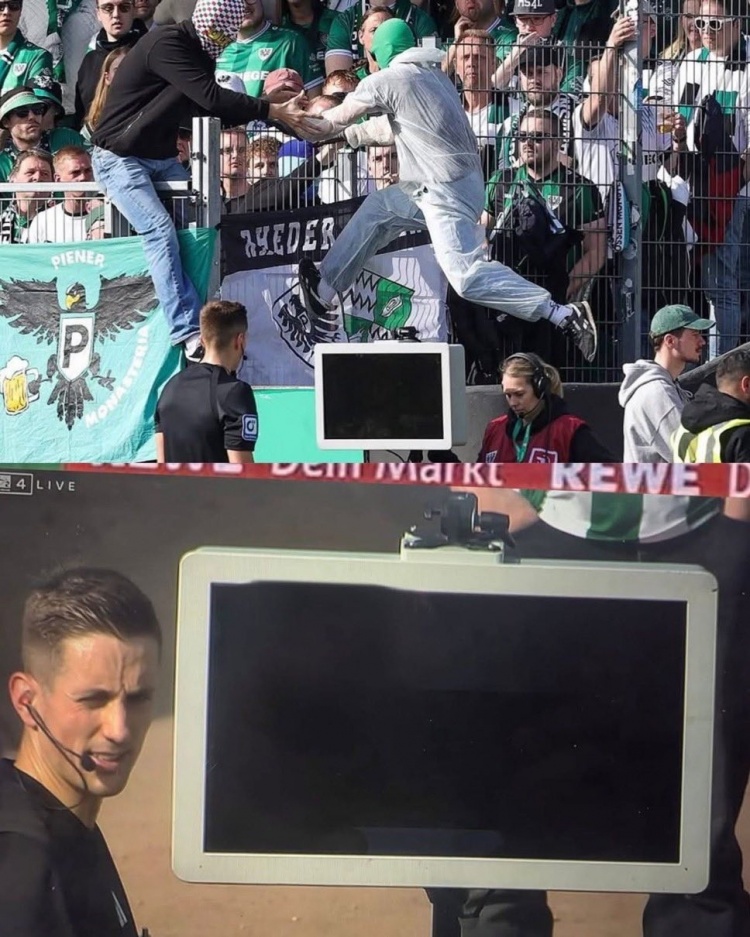 德乙赛场上蒙面球迷冲入场内试图干扰裁判执法 拔掉VAR显示器电源插头_德甲直播