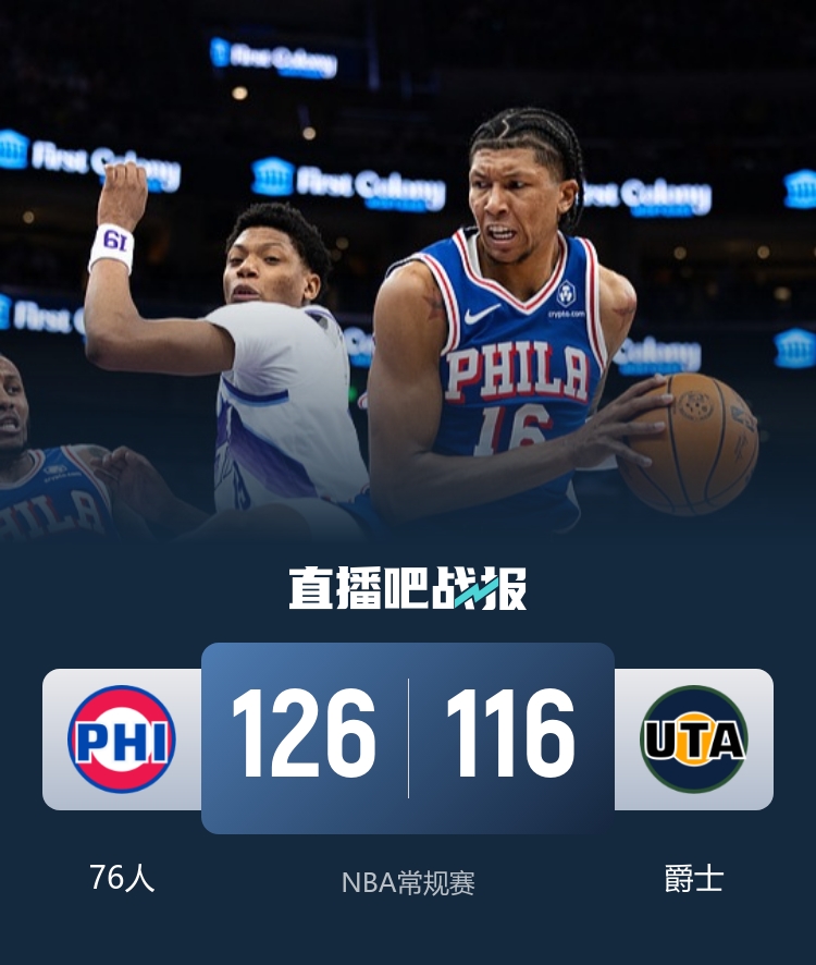 76人三人得分20以上轻松战胜爵士 格莱姆斯高光闪耀埃奇库姆表现抢眼贝利表现全面_NBA直播